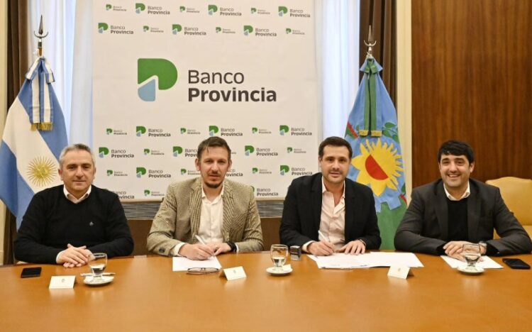 El intendente interino de Salto, Camilo Alessandro, junto a los titulares de otros ocho municipios bonaerenses, firmaron acuerdos con el Fideicomiso Fuerza Solidaria en la Casa Central del Banco Provincia.