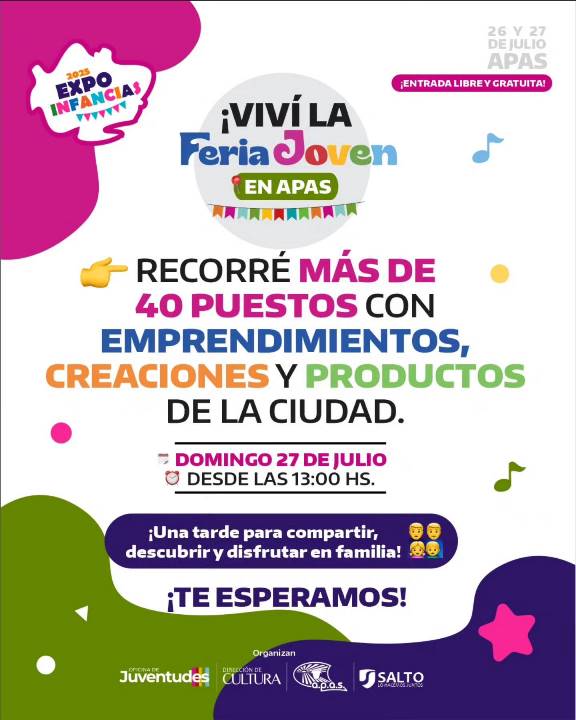 La Municipalidad de Salto invita a vecinos de toda la región a disfrutar de la ExpoInfancias, organizada este sábado 26 y domingo 27 con motivo de las vacaciones de invierno.