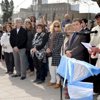 El intendente Bolinaga y el secretario de Gobierno, Julio Suárez, colocaron una ofrenda floral al pie del Monumento al Inmigrante, que se levanta en el centro de la plaza y junto al cual se realizó este siempre merecido homenaje.