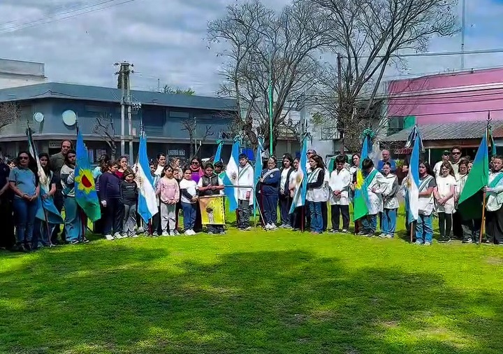 Durante la ceremonia se rindió un sentido tributo a los docentes fallecidos, y sus familiares colocaron una ofrenda floral al pie del busto de Domingo Faustino Sarmiento, en reconocimiento a su legado y compromiso con la educación.
