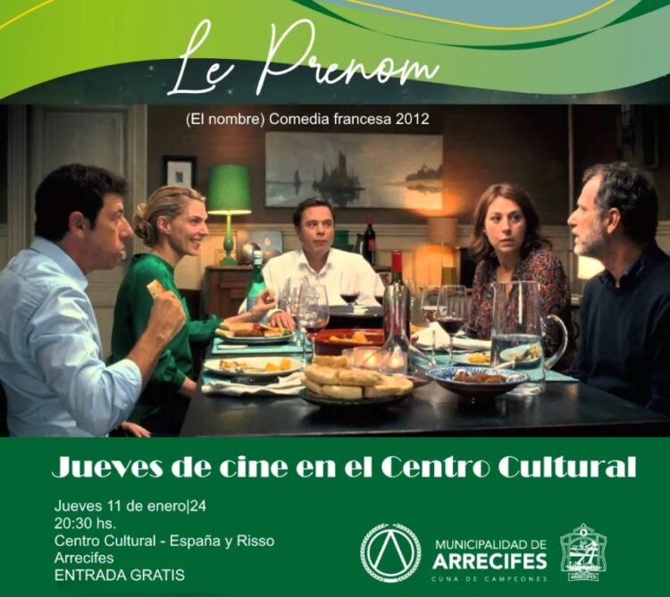 En el auditorio del Centro Cultural (España y Risso), se proyectará el film Le Prenom (El Nombre), comedia francesa de gran éxito que cuenta la historia de Vincent, quien va a ser padre por primera vez y decide ir a cenar con su hermana y su marido, quien es su amigo de la infancia. En la cena, le preguntan cómo llamará a su hijo, pero su respuesta provoca un caos.