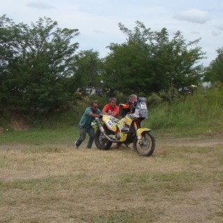 Entretanto, otros competidores sufrieron el mismo problema y la gente eludió la custodia para poder asistirlos. Y literalmente, estos arrecifeños le salvaron la etapa a 16 motociclistas.
