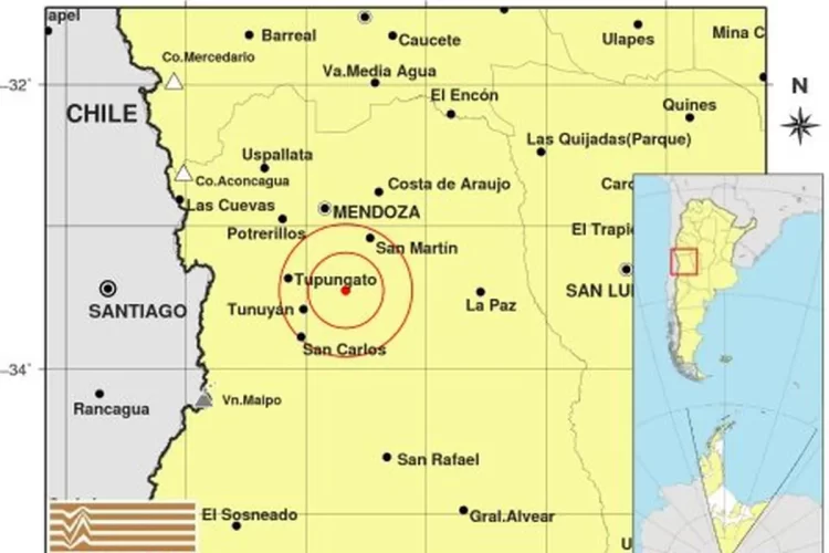 Según los reportes del Instituto Nacional de Prevención Sísmica, el temblor se registró alrededor de las 09:12 de esta mañana, con una magnitud de 5.4º y profundidad de 26 kilómetros. Tuvo epicentro a 70 kilómetros al sur de Mendoza capital; a 216 km al oeste de San Luis y 37 km al este de Tunuyán.