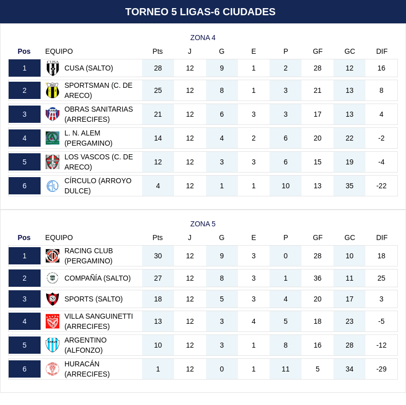 De los 33 equipos que iniciaron el 5 Ligas, siguen en competencia 27. Quedaron eliminados los últimos de las tres zonas de siete equipos y los tres peores sextos.