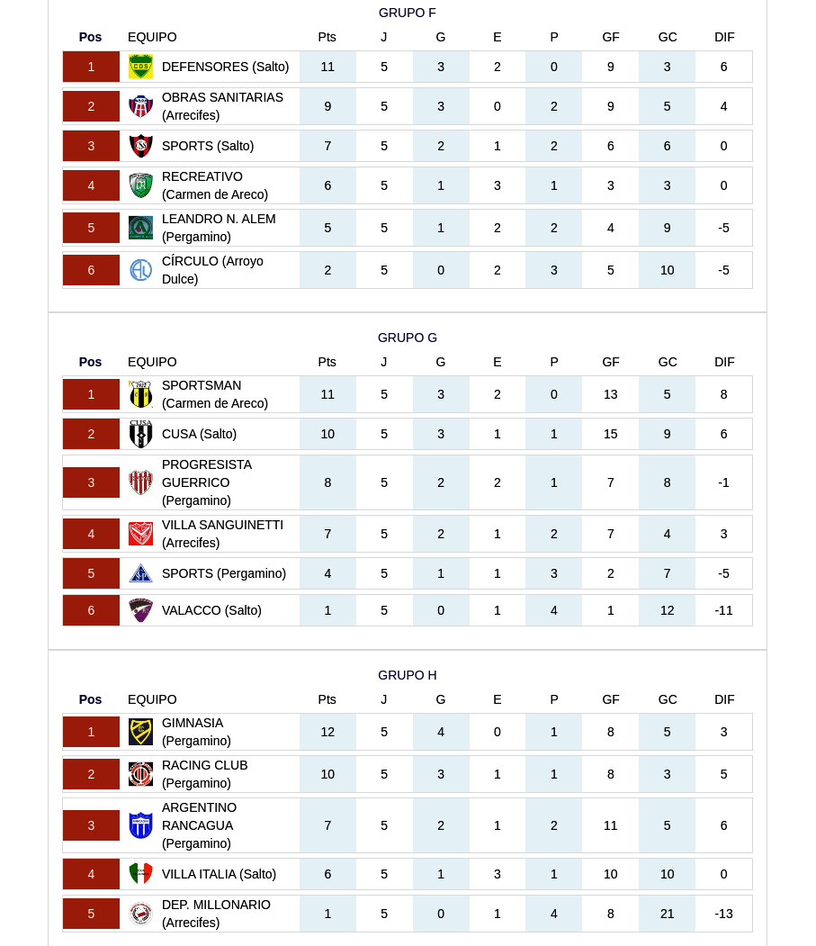 La quinta fecha del Torneo 6 Ligas de fútbol regional se completó este martes con el triunfo de Defensores de Salto 2 a 0 como visitante de Sports de la misma ciudad. El lunes, CUSA había goleado a Valacco, también como visitante, por 5 a 0.