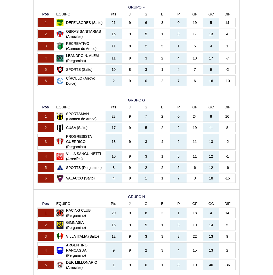 ZONA H: Racing (Pergamino), Gimnasia (Pergamino), Villa Italia (Salto) y Argentino (Rancagua/Pergamino).