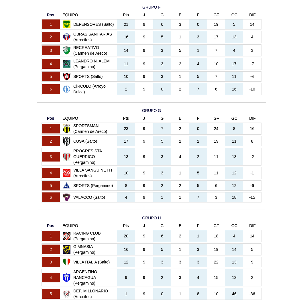 ZONA F: Defensores (Salto), Obras Sanitarias (Arrecifes) y Recreativo (Carmen de Areco).