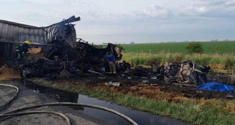 El camión que transportaba cereal se incendió por completo y su conductor, tristemente, falleció calcinado atrapado en la cabina. Terrible. La víctima es oriunda de Arroyo Seco, Santa Fe.