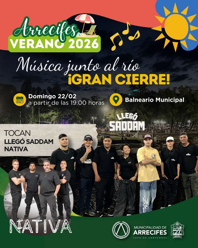 La edición 2026 de Música junto al Río llega a su gran cierre, después de un verano arrecifeño que fue punto de encuentro de vecinos y visitantes en nuestro balneario.