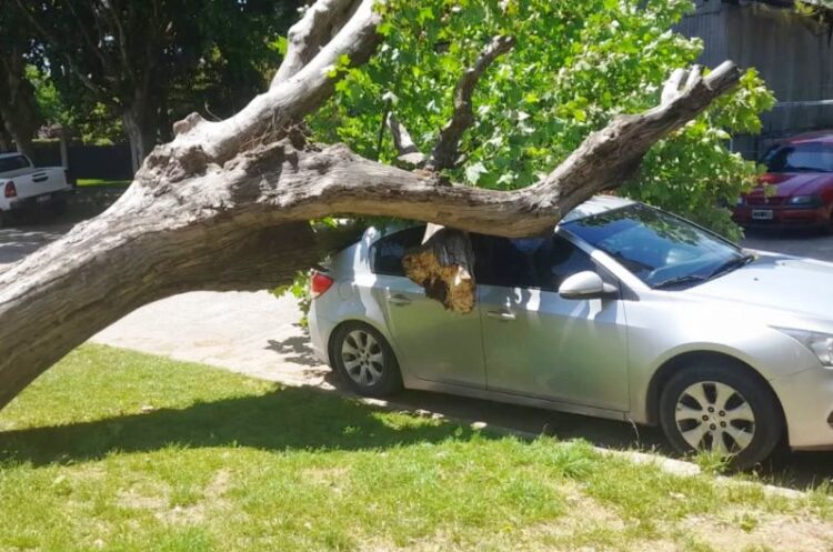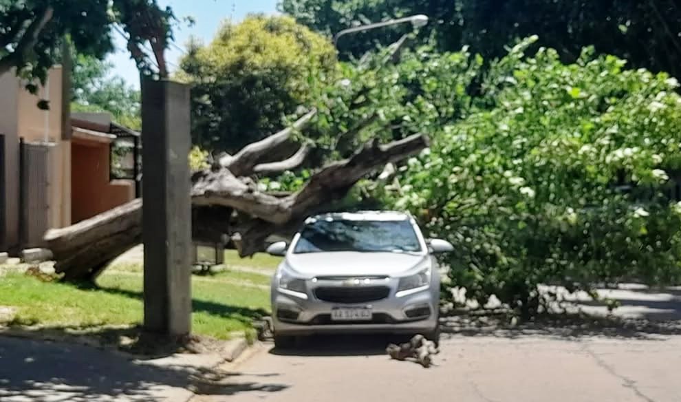 Este jueves, un árbol de grandes dimensiones se cayó en la calle Sarmiento de la localidad de Todd, con tanta mala suerte para el propietario de un vehículo estacionado allí que la caída se produjo sobre el techo de su auto.