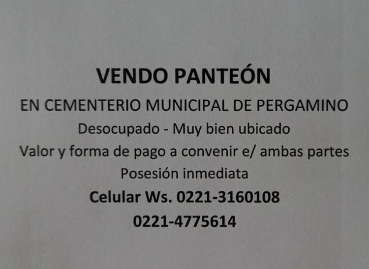 Vendo panteón en el Cementerio Municipal de Pergamino.