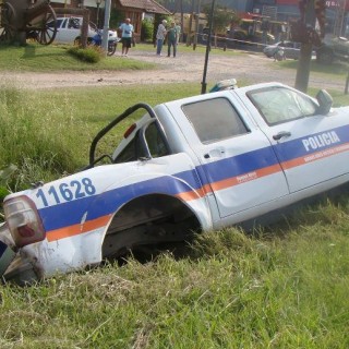 Cabe resaltar, como se observó en otro accidente de un patrullero hace meses, que el estado de los neumáticos de este móvil también era lamentable (ver foto del tren trasero). De ninguna manera se puede circular en esas condiciones y poniendo en riesgo la vida de los policías, aunque en este caso no fue la causa del accidente.