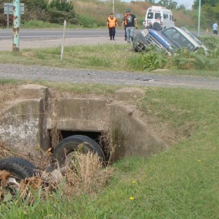 El móvil terminó incrustado en una cuneta y perdiendo el tren trasero, que quedó a unos 50 metros. El Kia, cruzado sobre la cinta asfáltica.