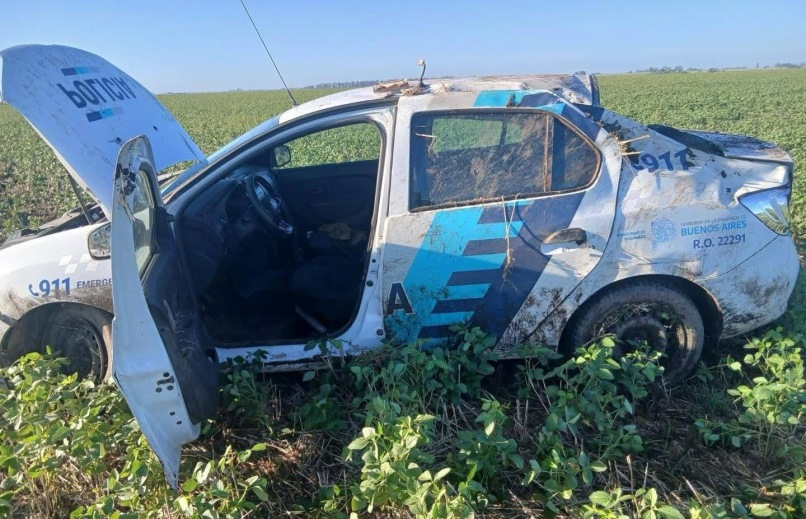 En la mañana de este domingo se produjo el vuelco de un móvil perteneciente al Destacamento Policial de El Socorro, parido de Pergamino, cuando circulaba por la ruta 32 desde la ciudad cabecera del distrito hacia la mencionada localidad.