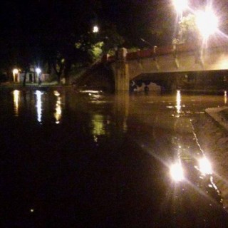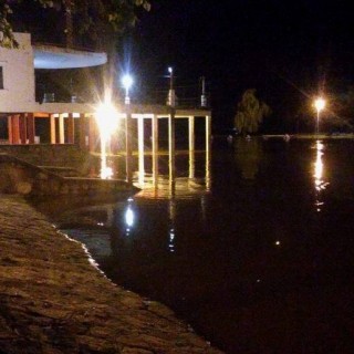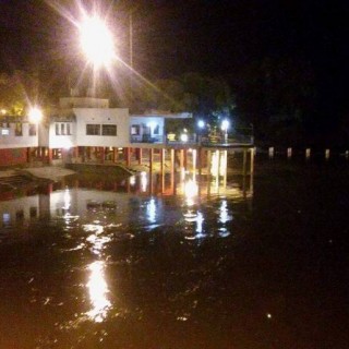 A las 20:30 de hoy el agua ya cubría la pasarela y se pronosticaba un nuevo desborde hacia la zona de quinchos del Balneario Municipal.