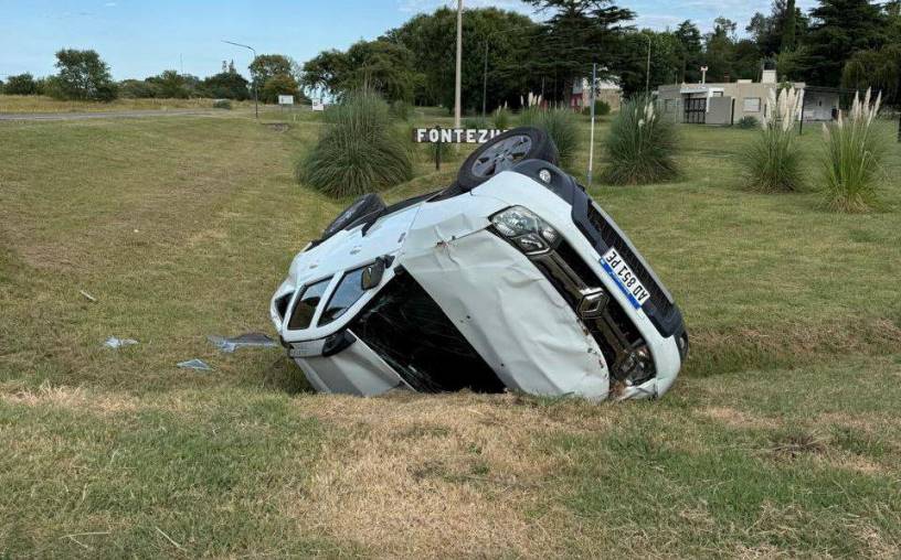 Por causas que se tratan de establecer, María Fernanda Kujarchuk, de 54 años de edad, domiciliada en la vecina ciudad, perdió el control del vehículo que conducía, una Renault Duster, lo que provocó que el rodado terminara volcado a un costado de la ruta.
