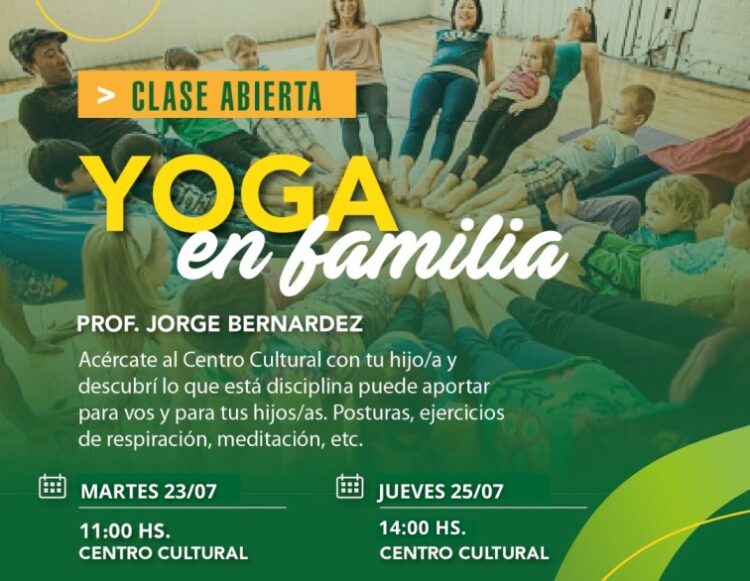 Hoy martes a las 11:00, el auditorio del Centro Cultural será el escenario de una nueva sesión de yoga en familia, como parte de las actividades gratuitas organizadas por la Municipalidad.